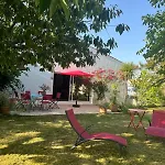 レスパス・アンカンから7キロメートル離れたところにあるMaison Arboree Style Re Proche Mer アングラン・シュル・メールには、庭園の景色を望むテラスがあります。